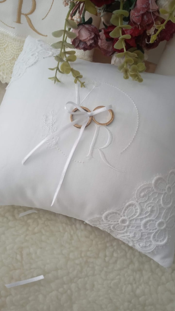 Seja com o nome dos noivos, iniciais, data do casamento ou um detalhe decorativo que representa sua história, cada almofada é feita com cuidado para transformar o simples ato de entregar as alianças em um momento inesquecível.